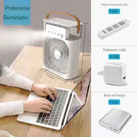VENTILADOR PORTÁTIL CON HUMIDIFICADOR 3 EN 1